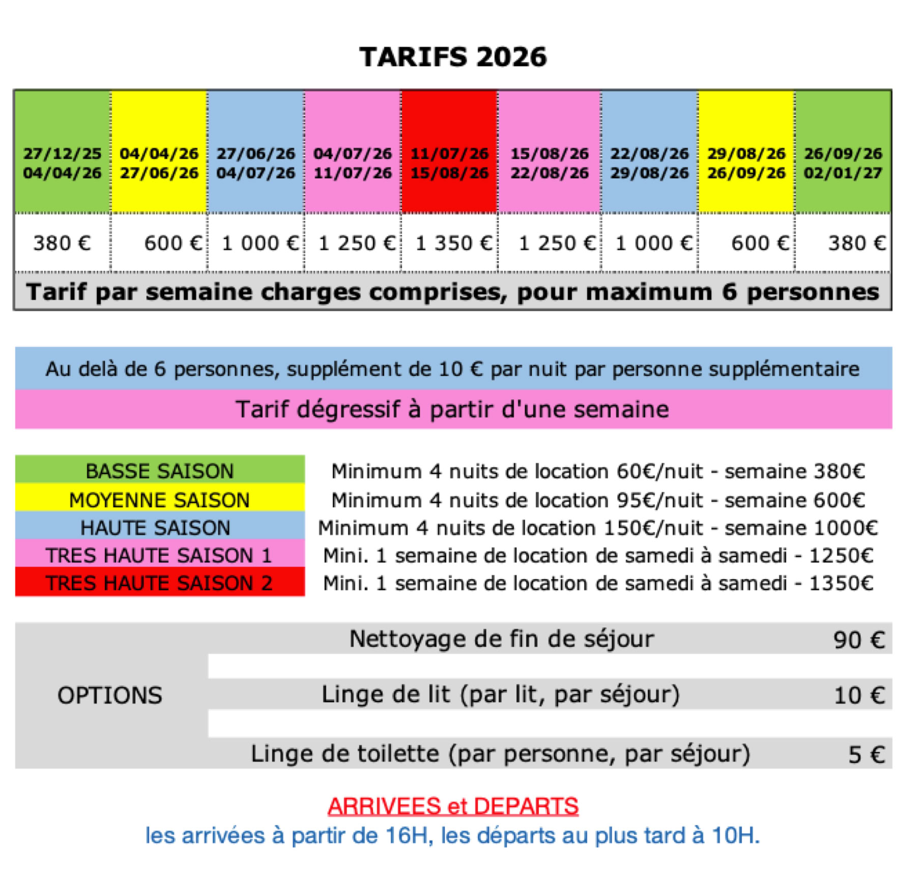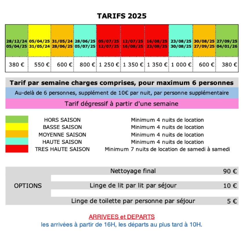 A défaut, le nettoyage final sera à régler sur place, en espèces, en supplément du prix de la location (cf tarifs options)