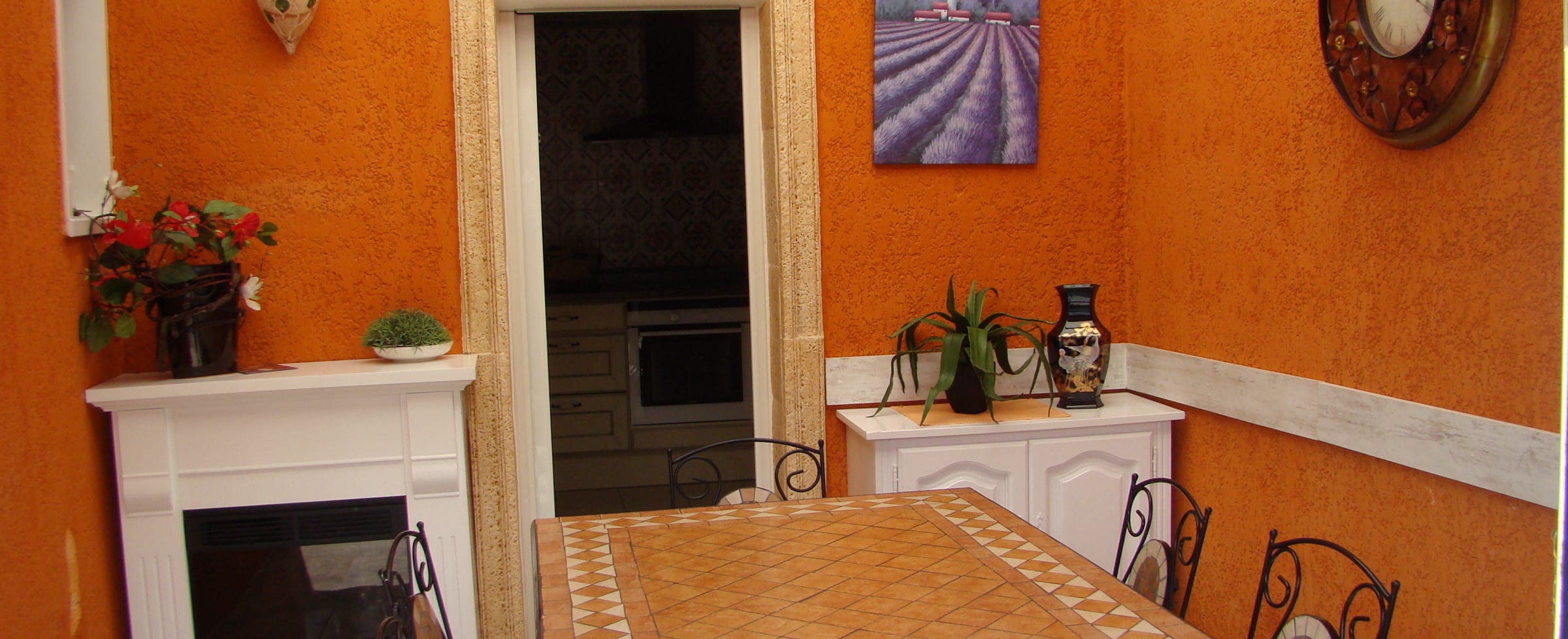 Small terrace at the front of the house and large terrace at the back.